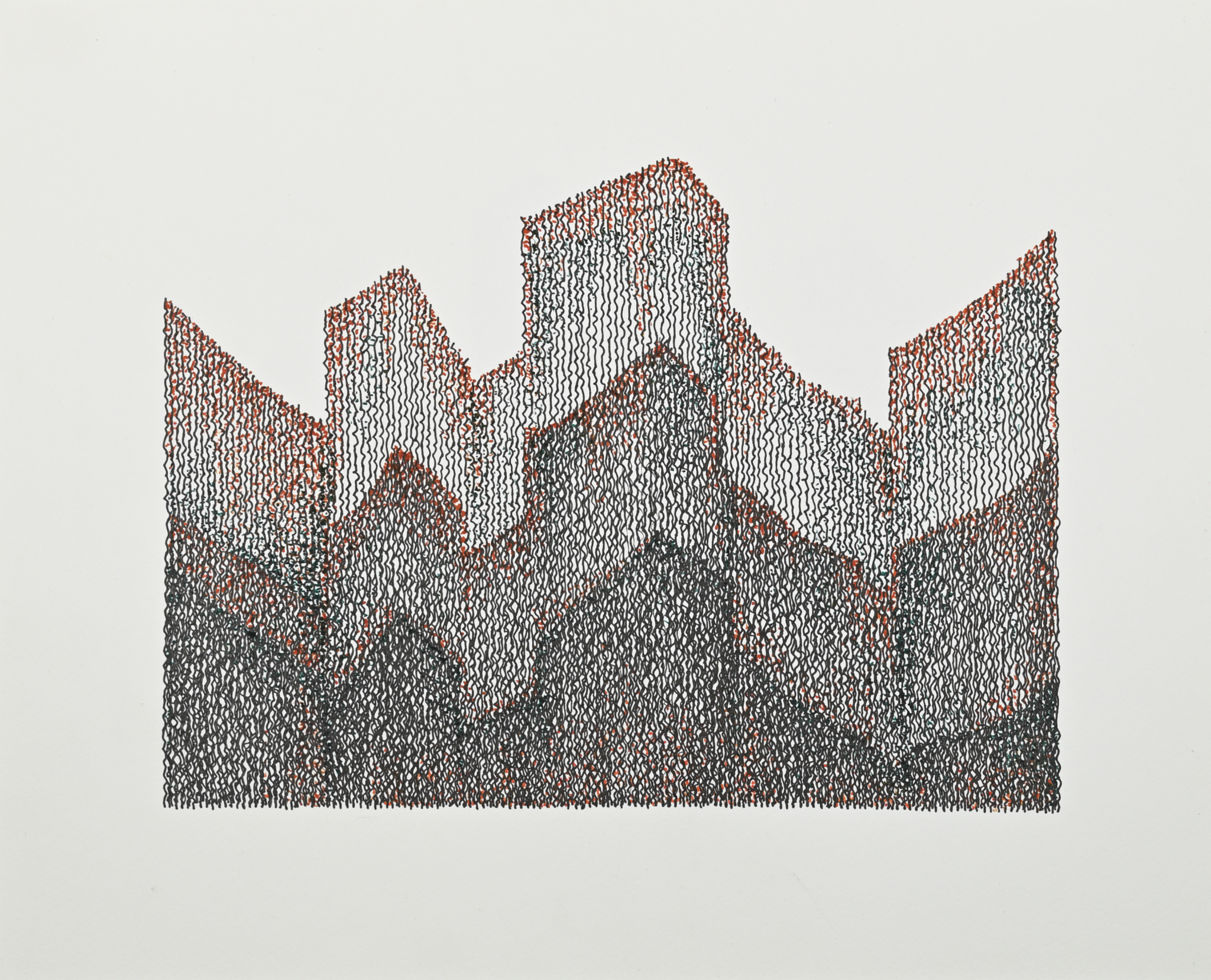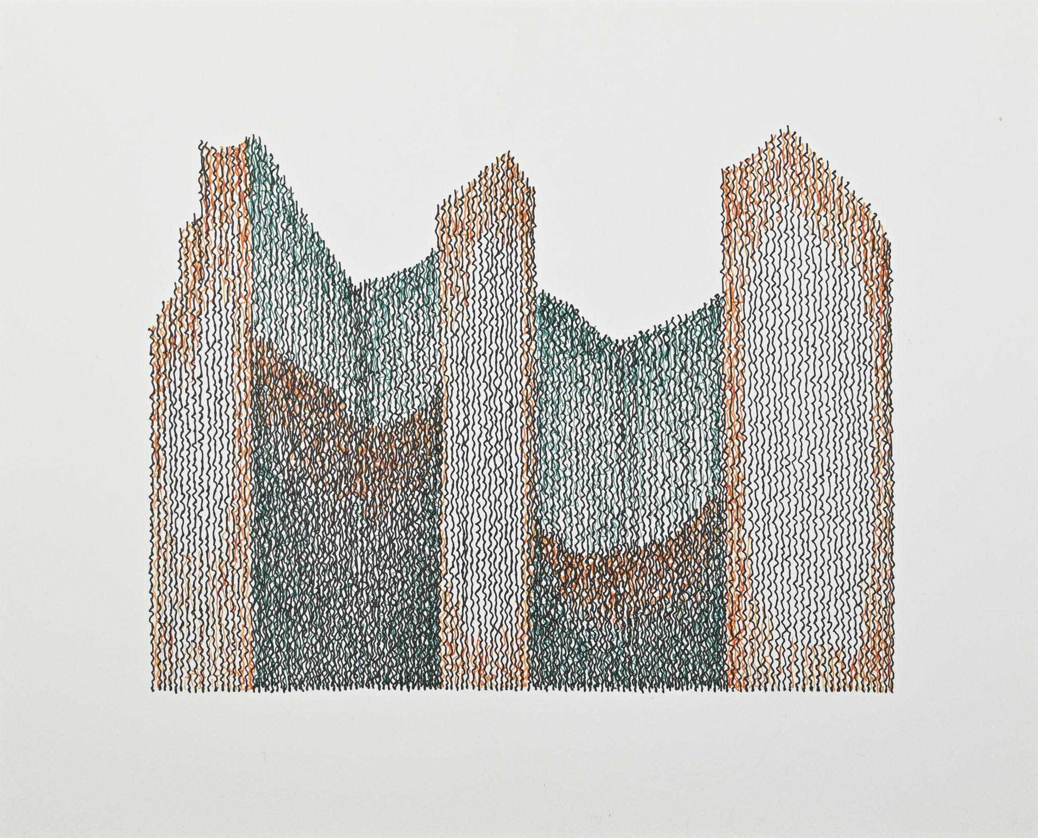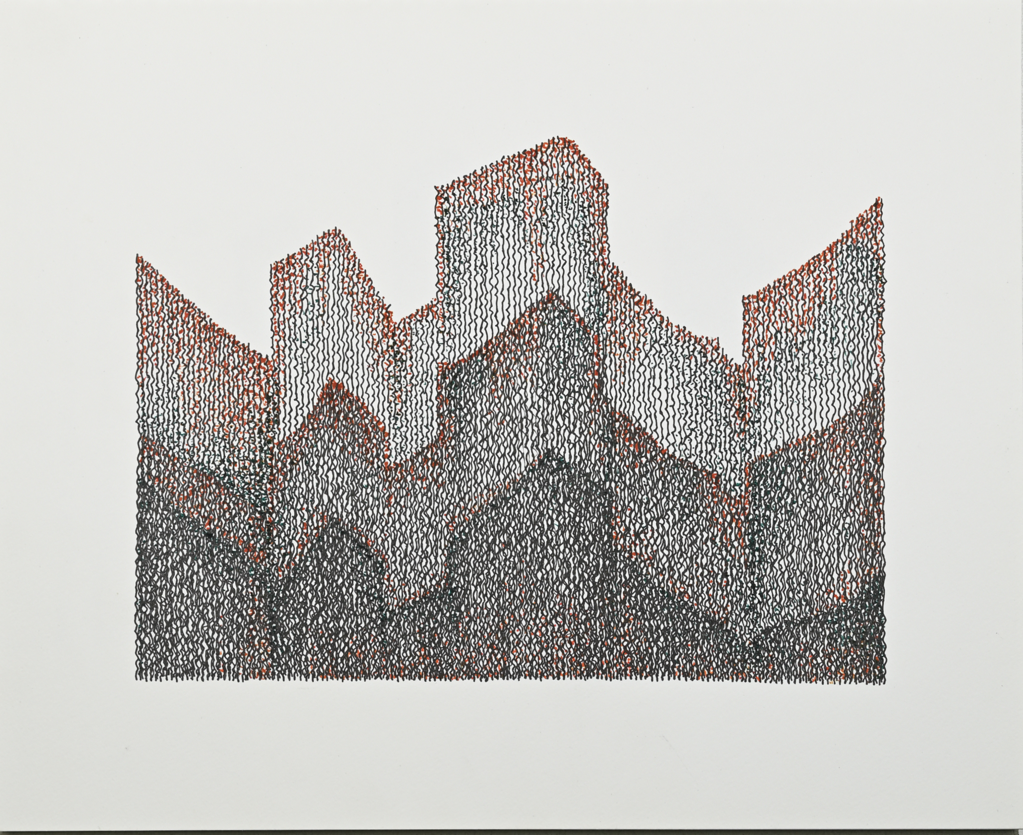 These works are drawn with 3 fountain pens on Holbein Multi-Drawing book paper. Currently, these are smaller pieces in 3F (8-5/8″ x 10-5/8″) and SM (9-1/4″ x 6-1/2″) sizes, and most are created in the field. The 3F book is drawn using a Pilot Vanishing Point fine nib pen with Platinum Carbon Black ink, a Sensa with a Schmidt’s fine nib with Pelikan Dunkelgrün ink, and a medium nib Sensa with Noodler’s Apache Sunset ink. The SM book is the first use in my work of a new pigment based ink, Tom’s Studio #60, in a Super5 .5 stub nib pen instead of the Vanishing Point.